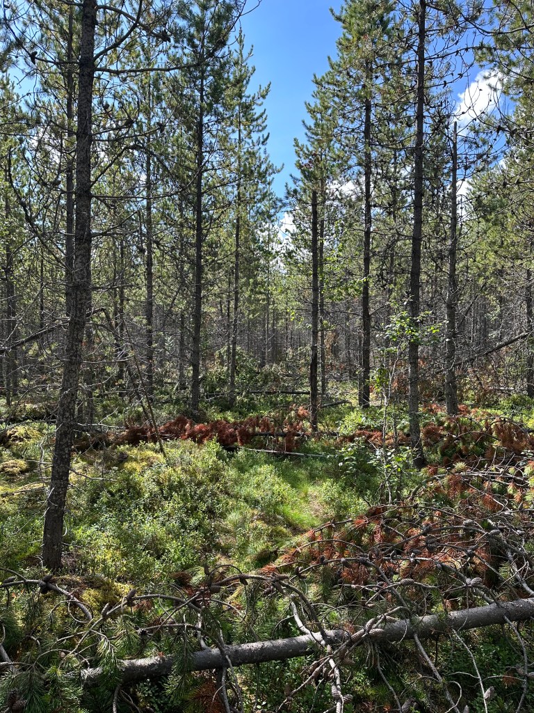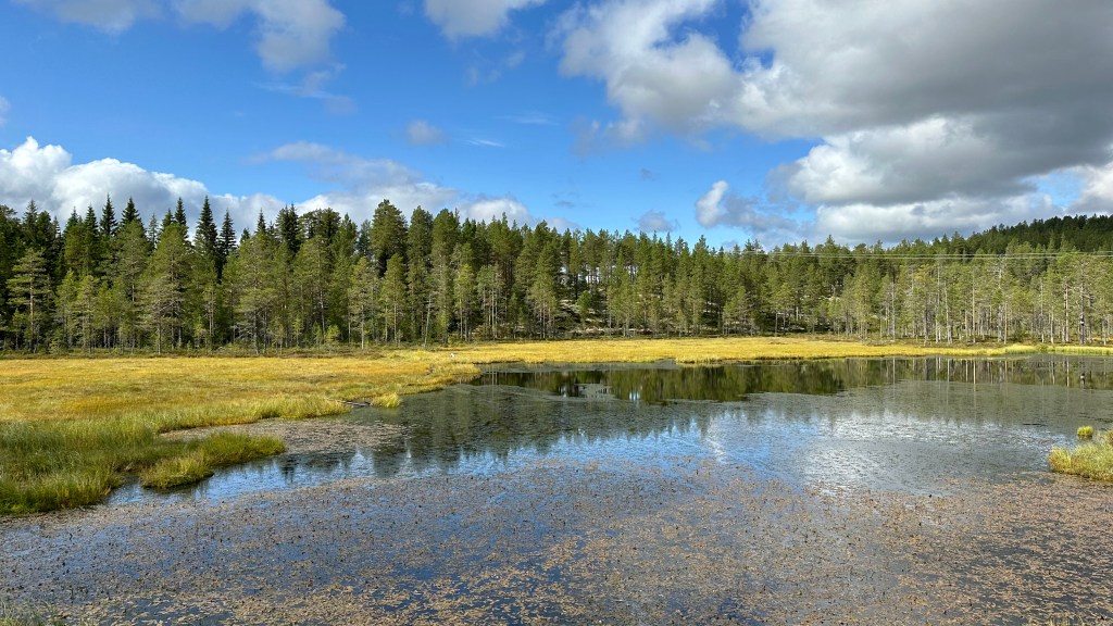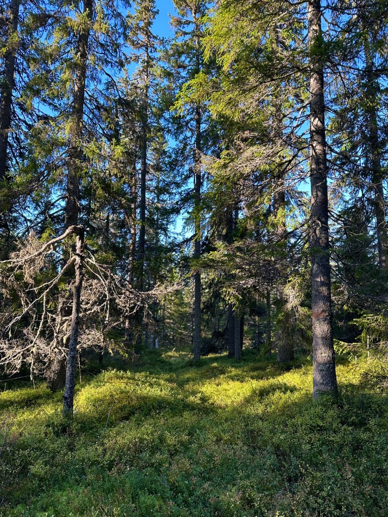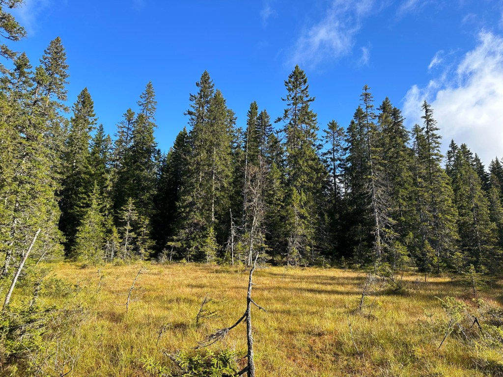 Väldigt fint parti mot Blomtäkt i myrkanten och delvis ute på myrarna.