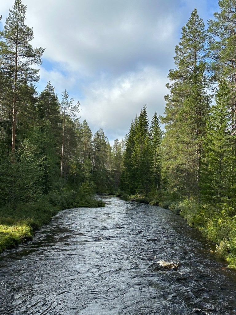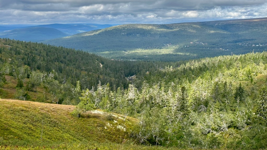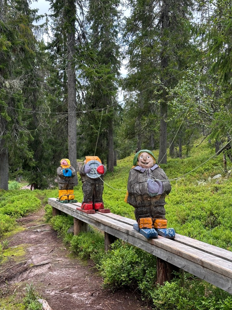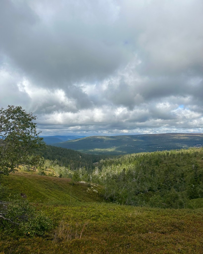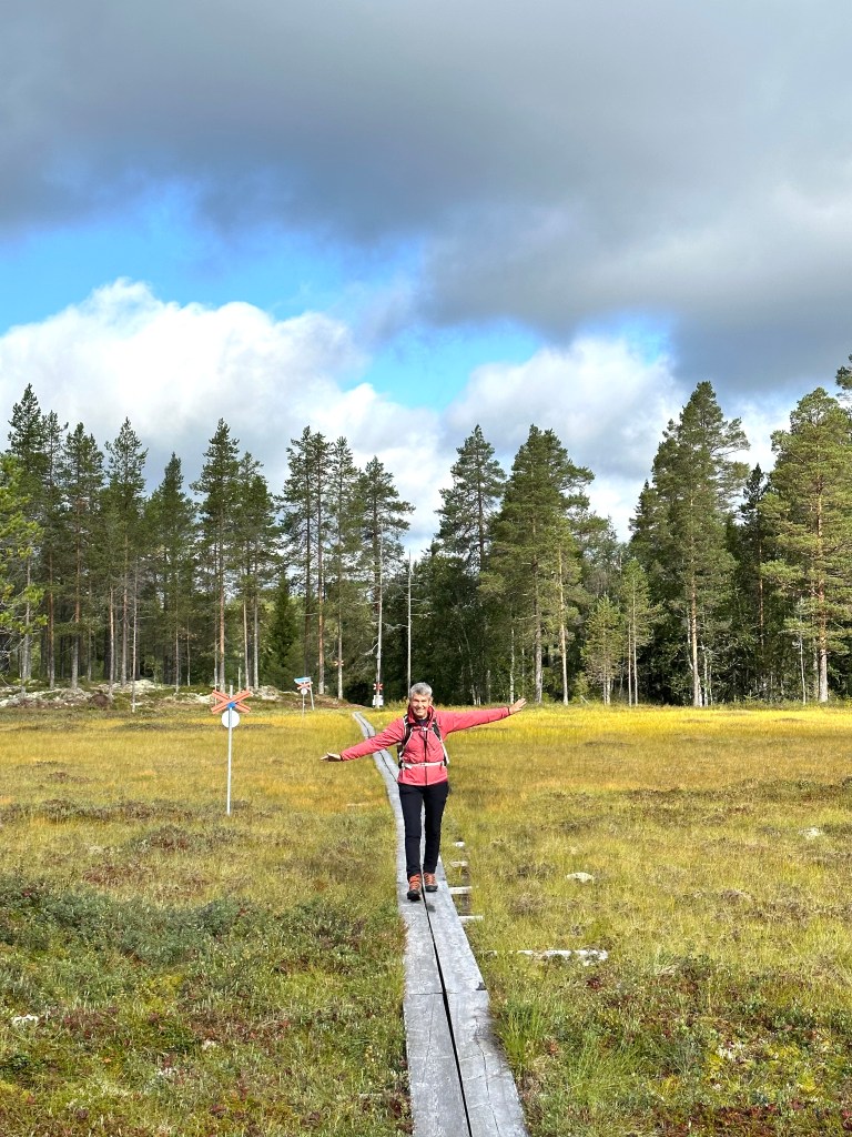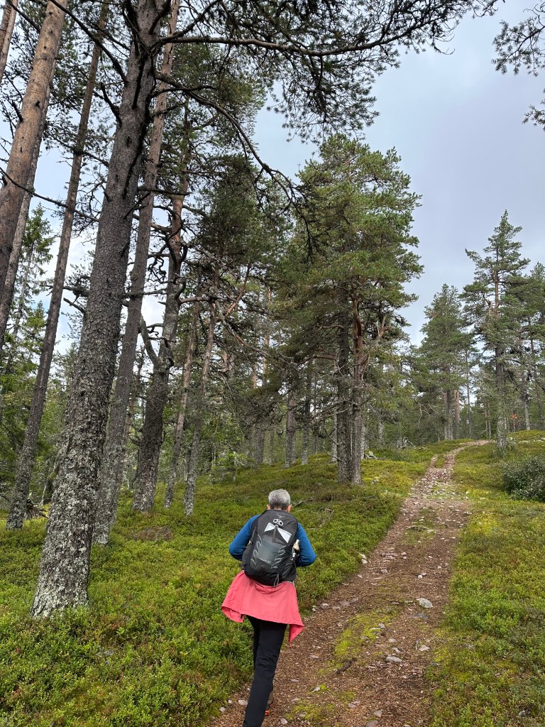 Vi åkte de 5 milen upp till Koppången och trodde på det fina vädret som TV och diverse väderappar lovat. Det uteblev. Gjorde inget. Det blev så bra ändå. Vi ville allt gå en lite längre tur så vi valde att besöka Tunturi och Blomtäkt. Det visade sig bli 7,3 km. Alldeles lagom.