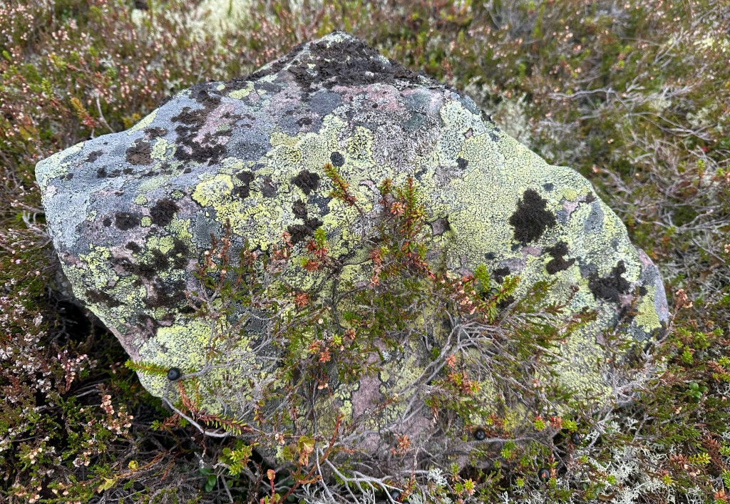 Jag hade slarvat lite med inläsningen och vandringen blev längre än jag räknat med. Det är ju inget salsgolv direkt eller Hemusterräng. Här gäller det att lyfta på fötterna. Inte ”oländigt” men microkuperat och ibland macro, oftast mjukt. Jag knallade däruppe i 4,5 timmar. Det tar sin tid med kamera och allt vackert.