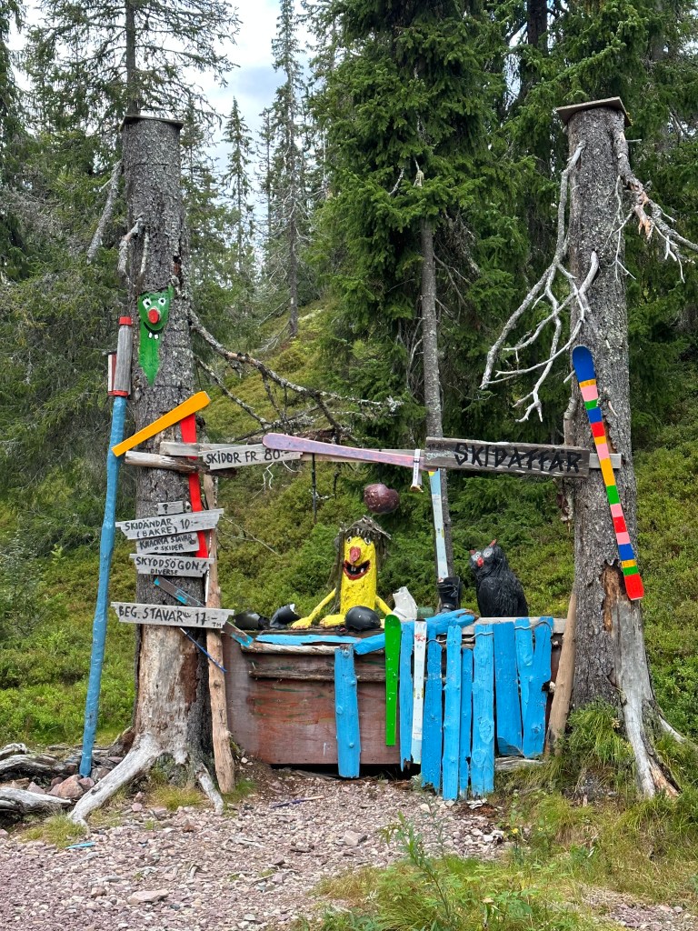 Ett kort stopp i Blomtäkt, sedan bara 2 km till bilen.Nya slogboden Björnidet halvvägs till bilen.