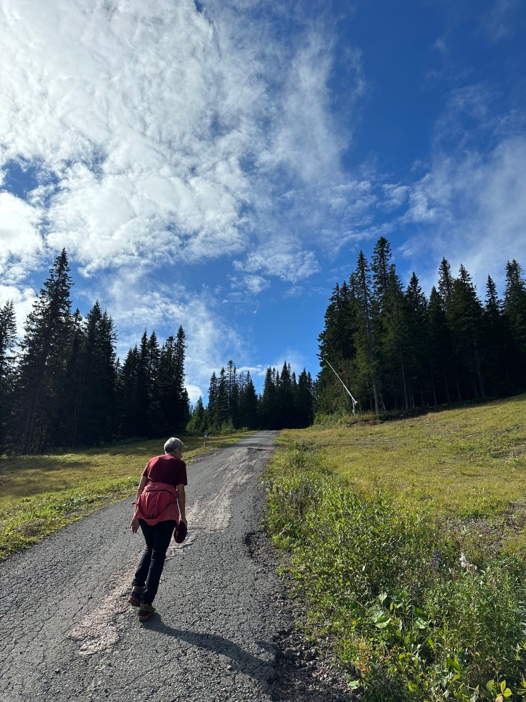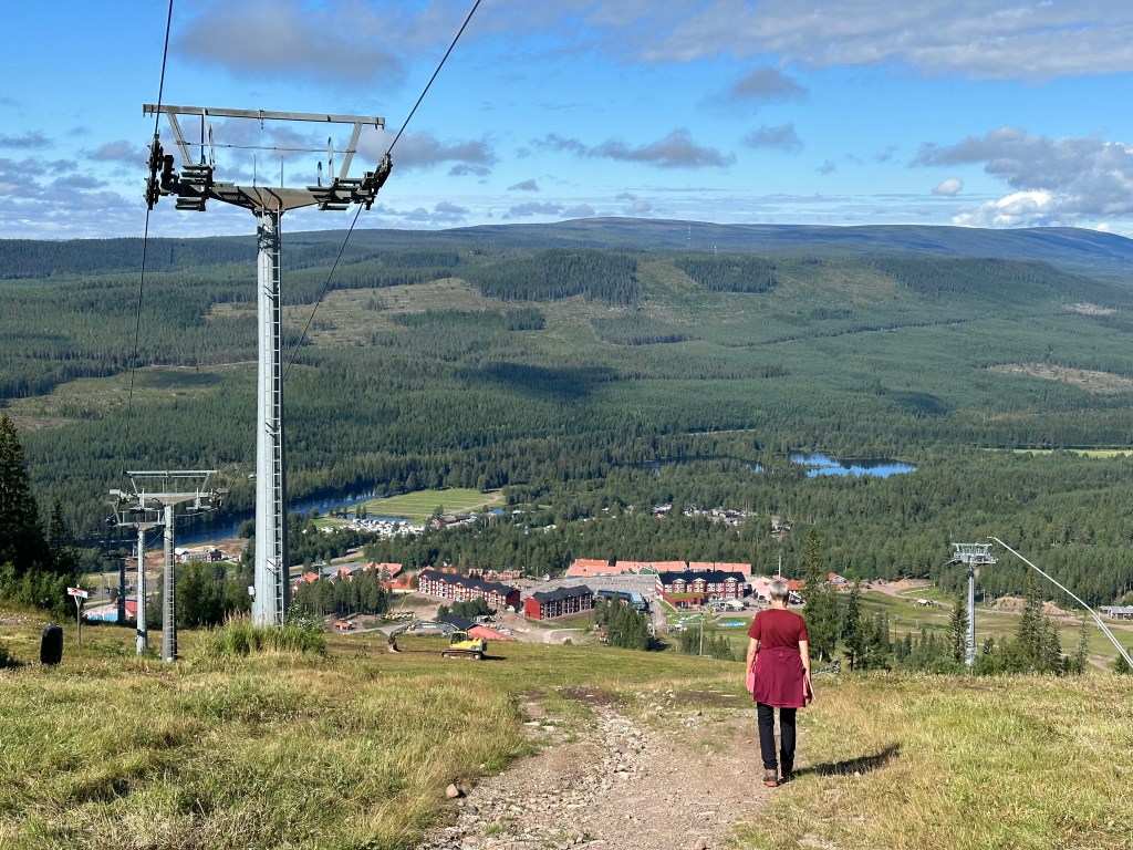 Jag börjar med en bild där vi är på väg på vandring upp till Hykie fäbodar, Åjk, i Älvdalen. Förhoppningen är att den bilden ska komma upp på förstasidan när jag länkar berättelsen till Facebook.
