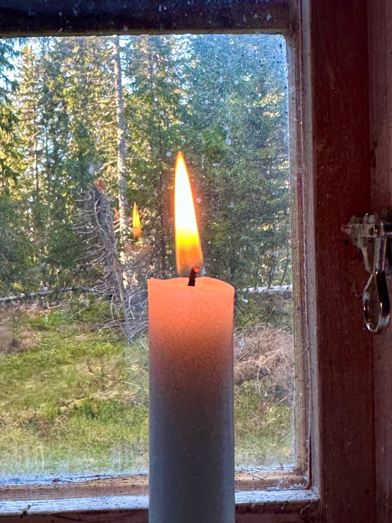 Gott med kaffe i stugan, tände ett ljus och hade en fin stund därinne.