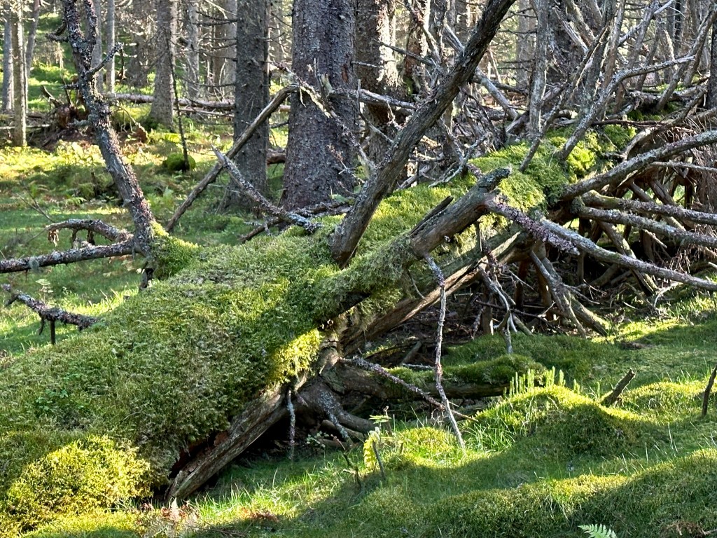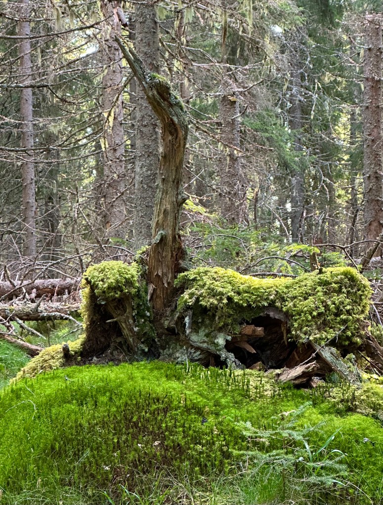 När man gått drygt en km från vändplanen vid Oxbrottet där Kallbol ligger möts man av en mur. Då är man framme. Stigen upp är rätt brant men som tur är kort. Där slet dom uppför med sin boskap och alla förnödenheter i mitten av 1800-talet och framåt. Nu åker man bil nästa ända fram. Om man vill alltså, men en vandring från Fyriberg är att rekommendera. Några trollskogsbilder från biotopområdet.