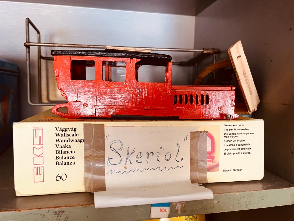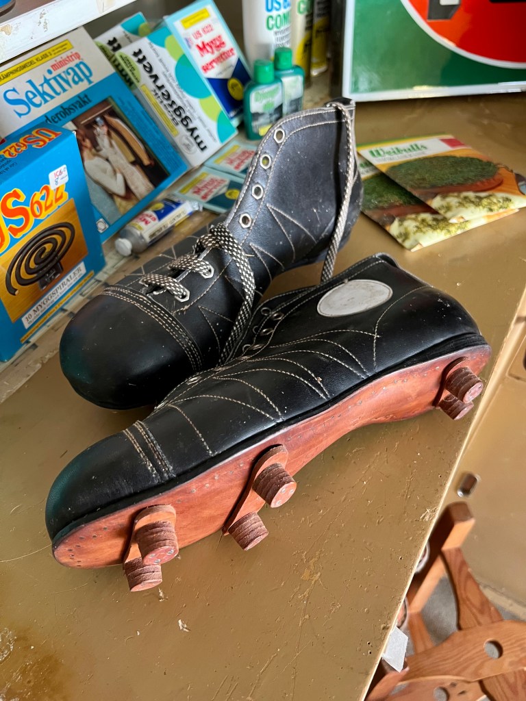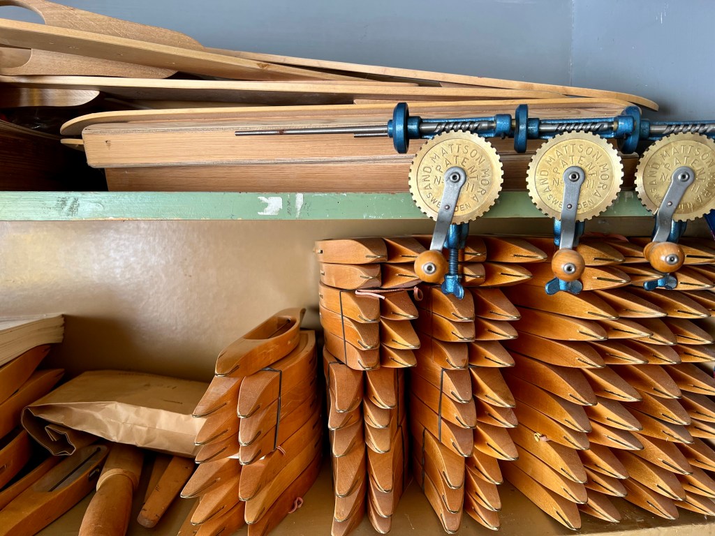 Fina gamla skorAlbin hade tidigare en vävskedfabrik och givetvis fanns varor från den tiden i butiken. Spolar och skyttlar.