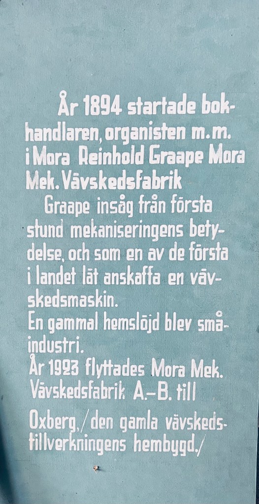 Albins hantverk.En minnesskylt om den gamla vävskedsfabriken, Mora Mekaniska Vävskedsfabrik AB.