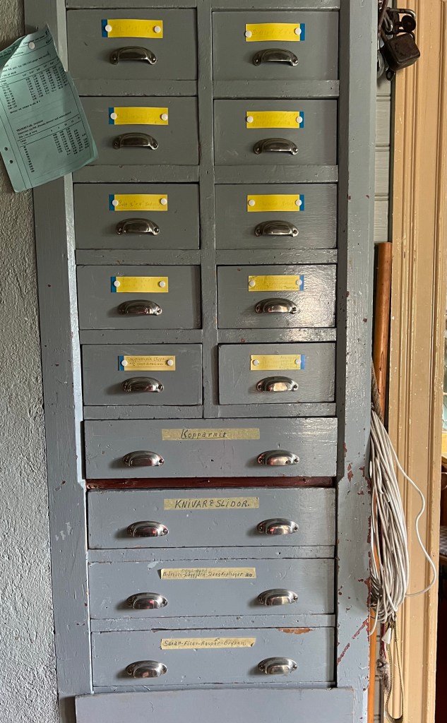 Jag har länge varit intresserad att titta in i den gamla affären och det lilla bankkontoret. Det öppnade sig möjligheter och jag var inte sen att ta mig en rejäl titt och även många bilder. Kusinerna Margareta och Göran Albinsson släppte in mig efter en del tjat från min sida