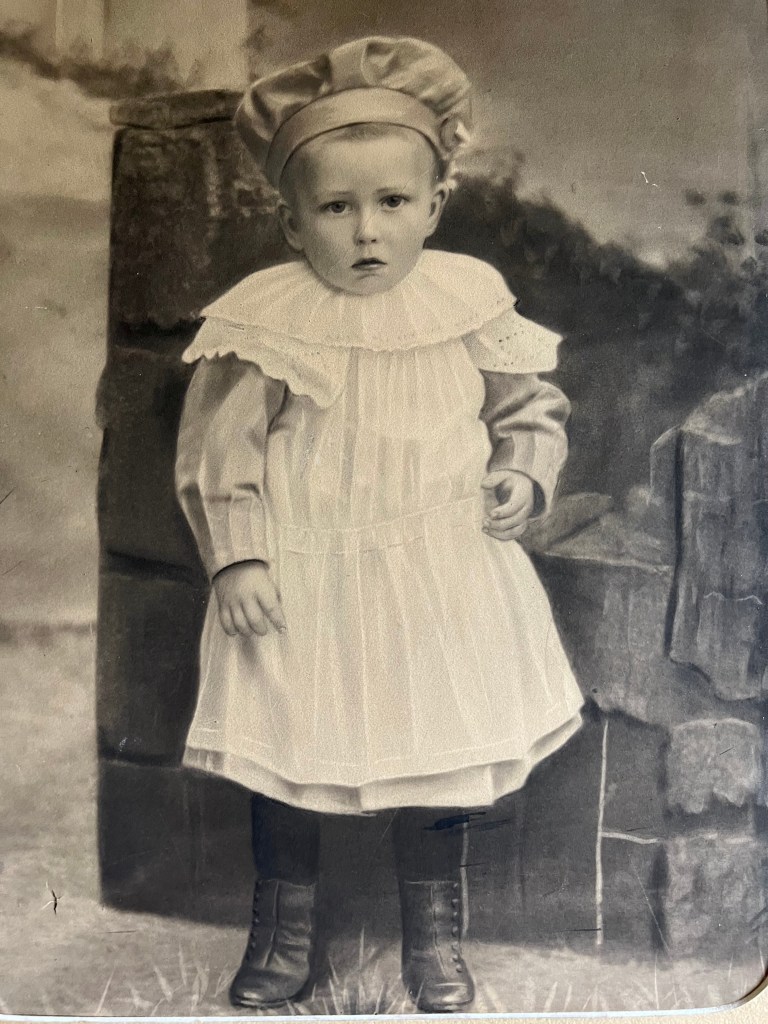 Väntplats i lokalen.Kassaskpået var imponerande.Stämplar, viktiga saker då.Några ”moderna” sparbössor.Fars plats. Askfat på bordet på den tiden.Ett litet sidospår kanske. Det här är den förstfödde i fars familj. Namnet var Alfred om jag minns rätt. Han dog tyvärr tidigt och far Carl blev därmed det äldsta barnet i familjen, född 1904. Bilden fanns hursomhelst inne på kontoret.