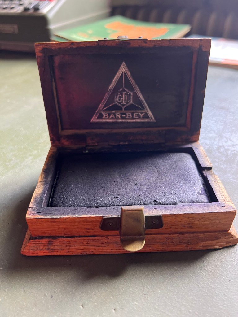 Affärsdisk från butikssstarten.I den här köpmansdisken förvaras bl.a. tobak och cigaretter tror jag allt.