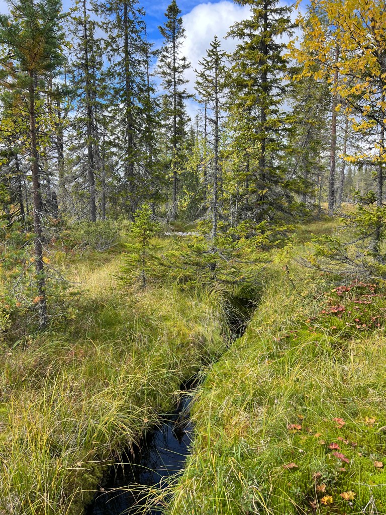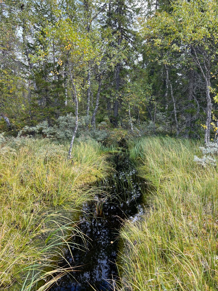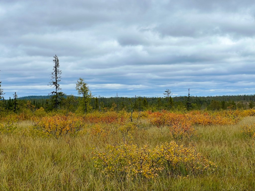 Nej, inget fika här heller. Jag har varit till Grenkojan tidigare och där är det fint. Kanske solen kommit fram när jag är där. Jag knallade vidare över myrarna som blev fler här ett tag.