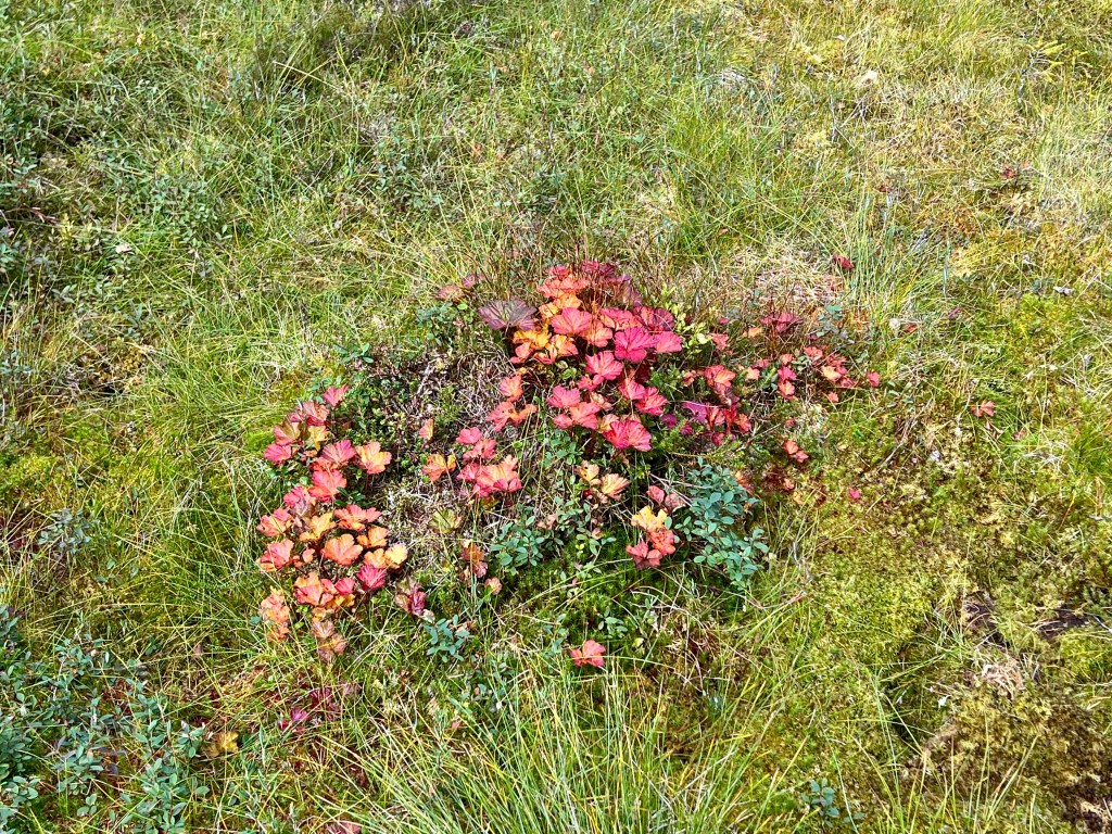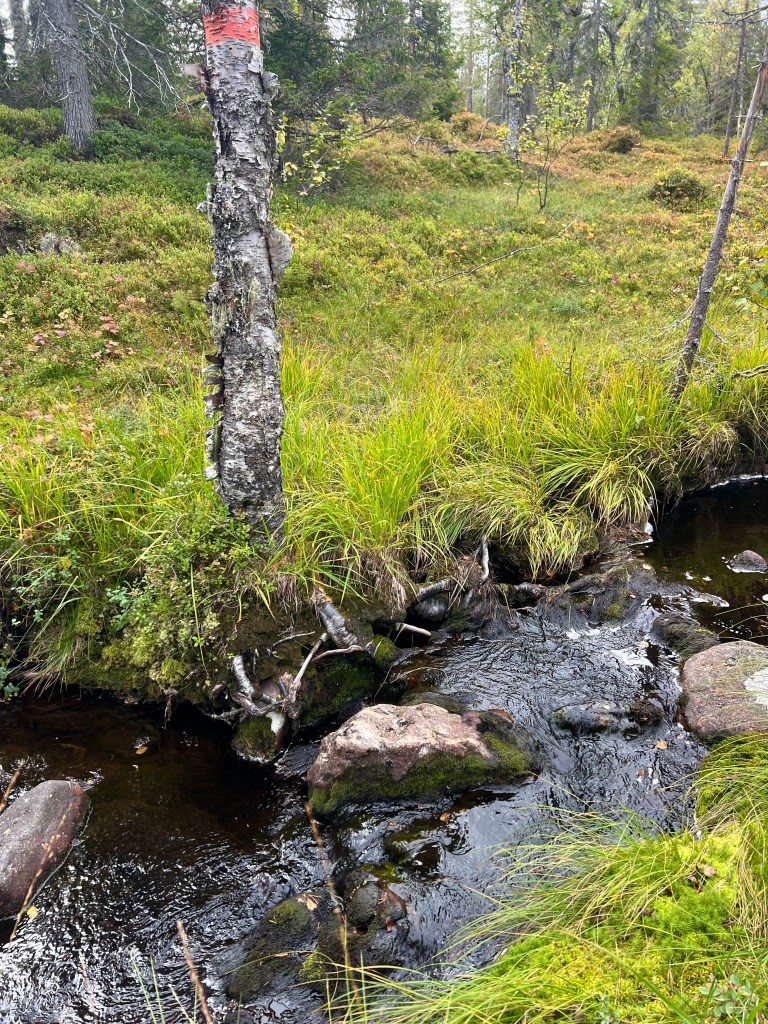 Färgstarkt intill slogboden/vindskyddet.En bäckpassage, utan problem