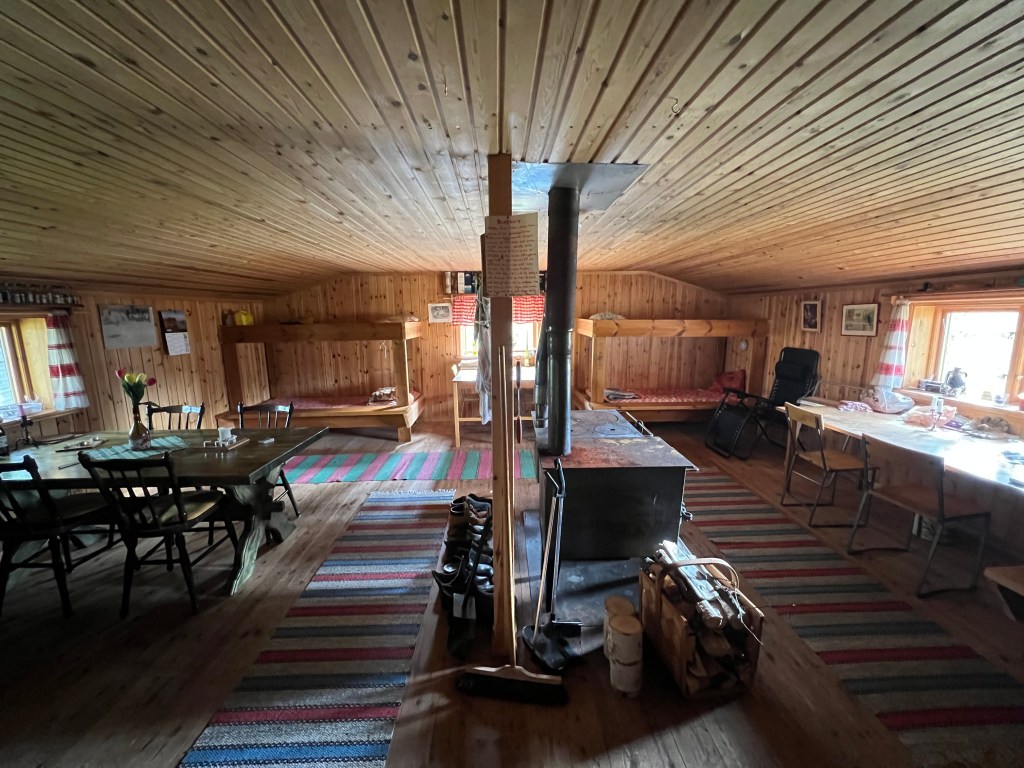 Lika städat och fint som sist jag var här, ca 5 år sedan. 8 britsar för jägarna. Stugan har tydligen funnits på platsen sedan 1927. Den förbättrades och byggdes på år 1997. Nusnäsarnas utskog ligger här och dom är mån om sin koja. Jag fick för några år sedan låna ett fotoalbum av Lennart Lind som han fixat i samband med nybyggnationen. Sök på Grenkojan på ”Du vet att du är från Mora när” så får du fram fotoalbumet från Lennart.