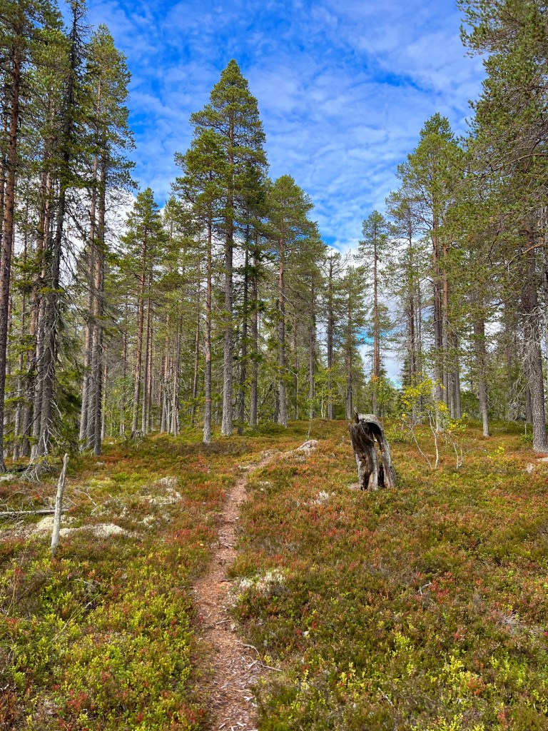 Lederna är markerade och man åker inte fel. Det äfinns nya informationsskyltar och markeringar. Nytt för i år var ”varning” för hundspannen när man korsar deras sladdade leder. Mycket bra, då de har förtur där de kommer ofta i bra fart. Jag passerade Blomtäktsspåret och skulle se om jag hittade något spår till Tunturi. Vackra ledskyltar på vägen.