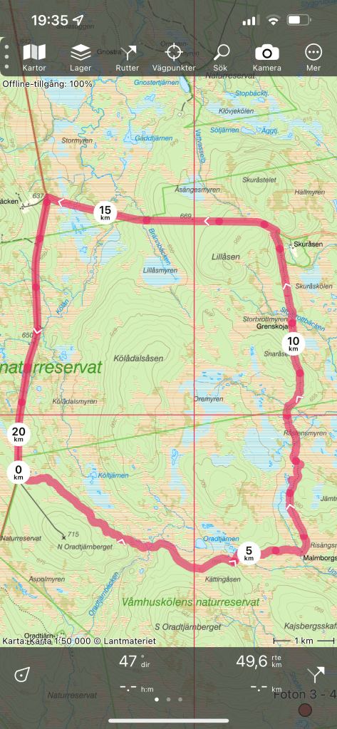 Vi avslutar med en kartbild över turen. Det blev en minst lika fin tur som jag förväntat mig. Samla ihop några intresserade vandrare, ta med flera bilar så slipper ni cykla. Naturintresserade blir helt nöjda, jag lovar.
