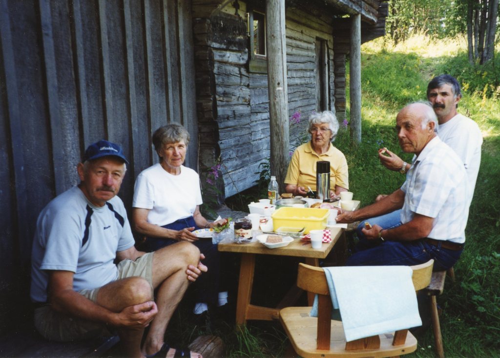 Här är delar av klubbens medlemmar. Albert är tvåa från vänster. Namnet på de övriga kommer. De finns familjen Anderssons stuga i Säs.